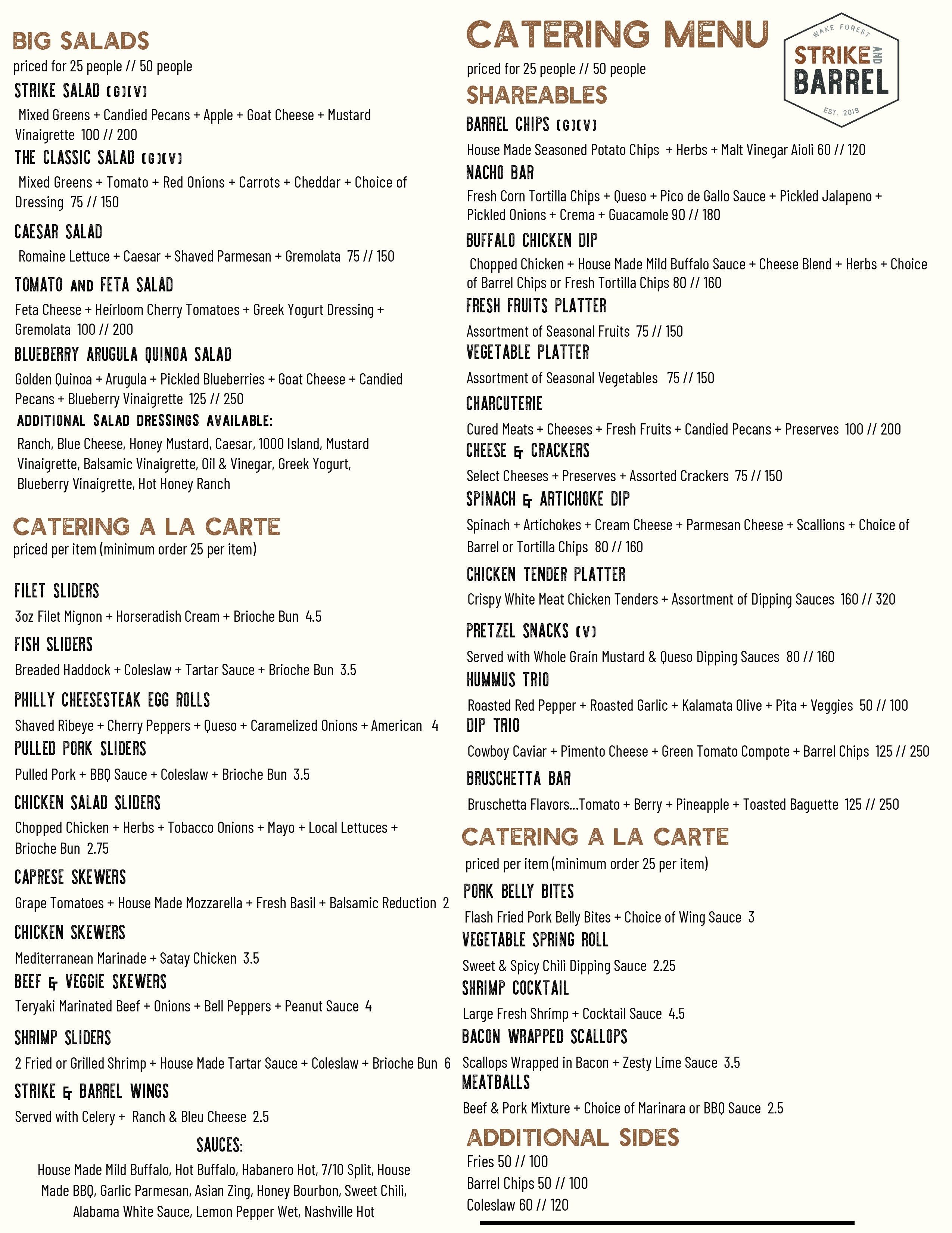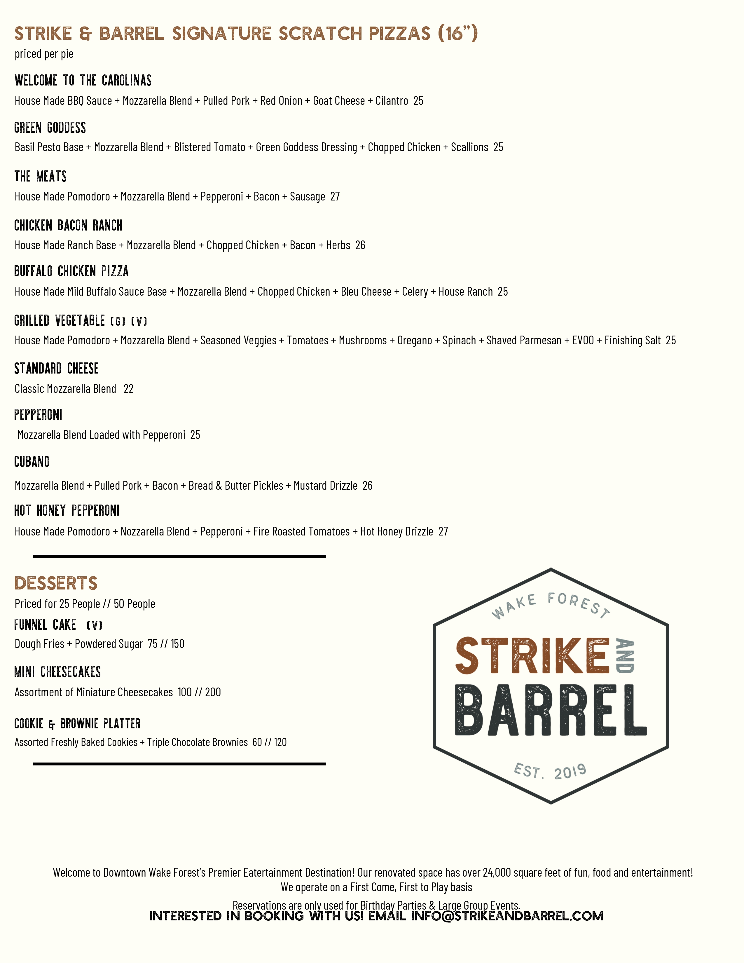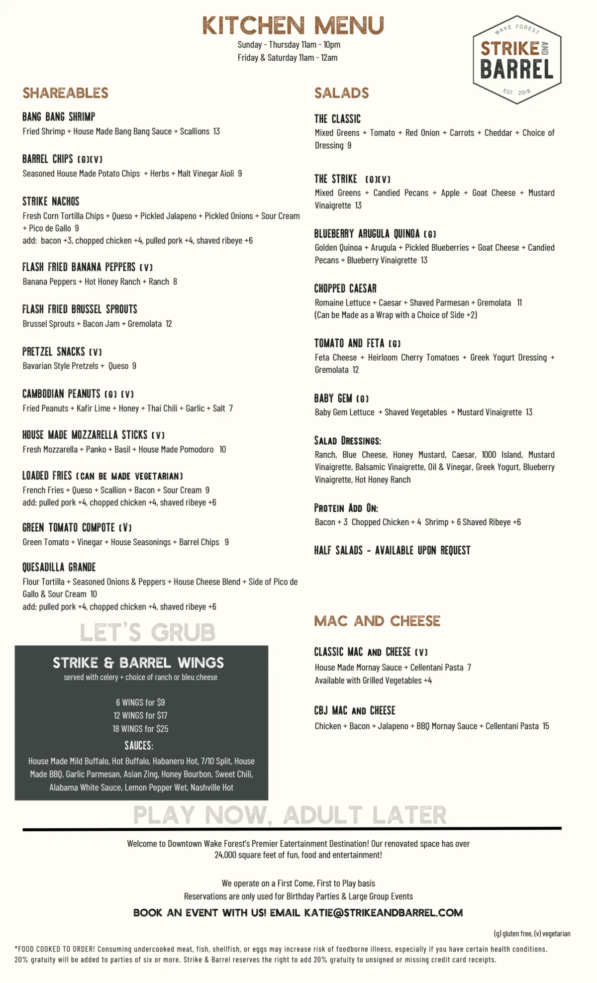 If you’re looking for a place to host a party, work event, or fundraiser, be sure to reach out to Strike & Barrel’s team. They will take great care of you and ensure your event is a hit!