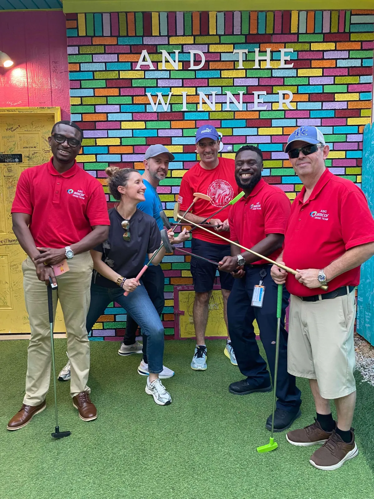 Our mini golf & axe throwing venue is perfect for company events - 18 mini golf holes, axe throwing lanes, tasty drinks, food trucks, and big spaces for teams!